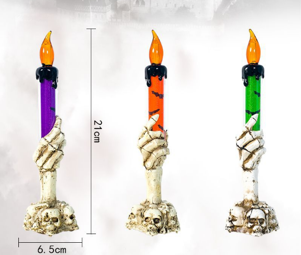️ Bougie LED Halloween – Main de Squelette Fantôme